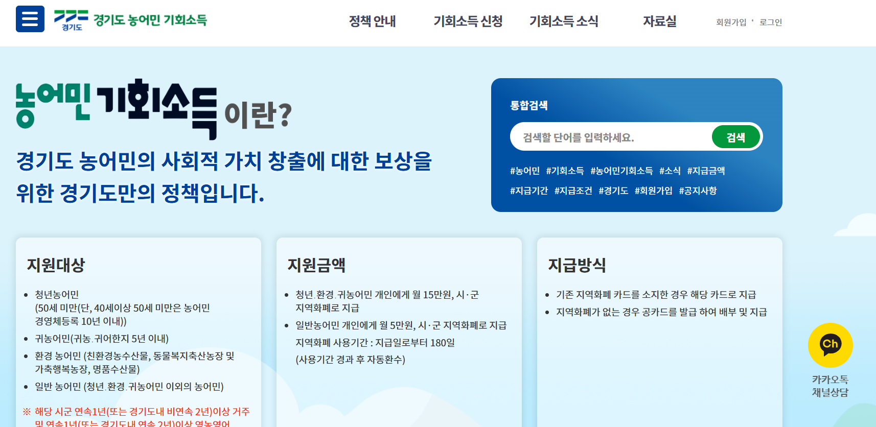 경기도 농어민 기회소득 통합지원시스템
